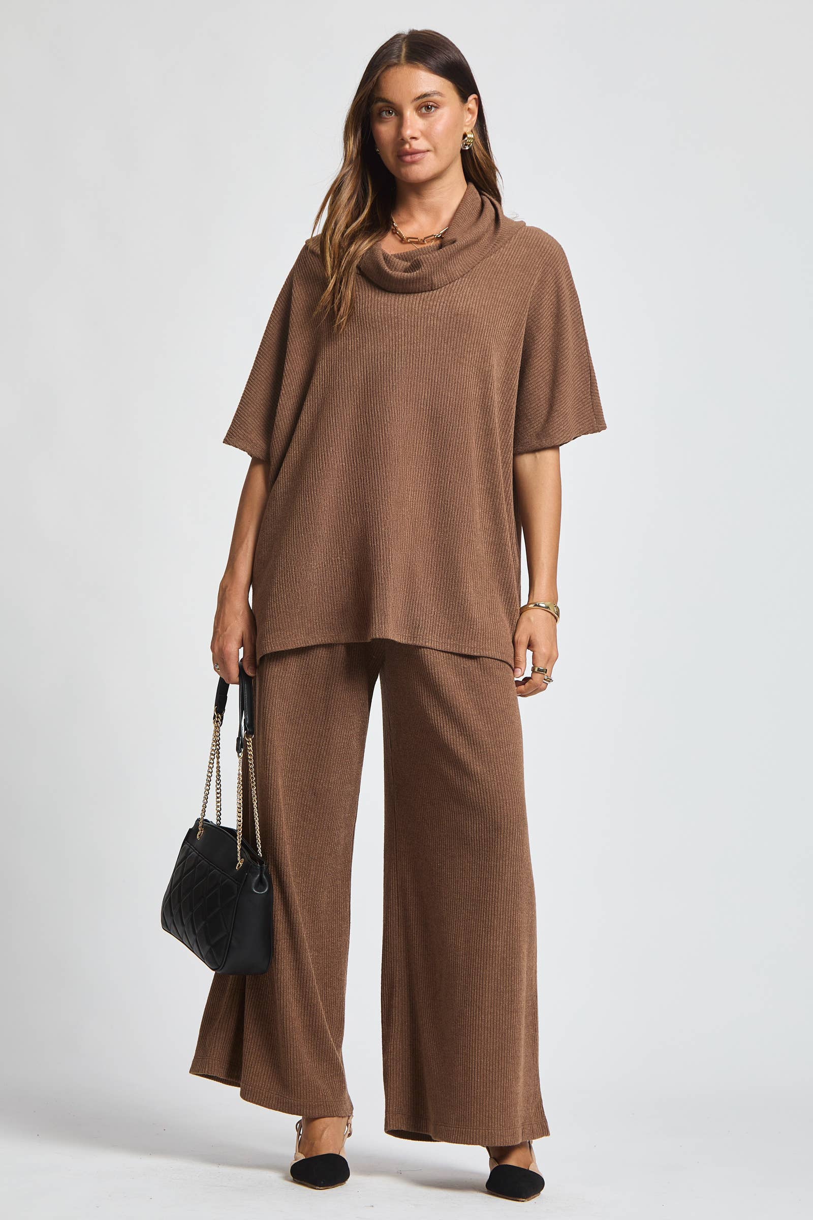 Cowl Neck Top + Relaxed Pants 2 Piece Set