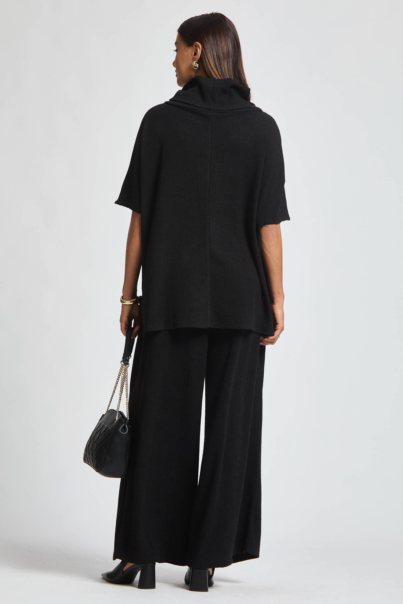 Indulge in effortless comfort with this 2 piece set, featuring a soft cowl neck poncho top and relaxed pants for an elevated loungewear/travel look.