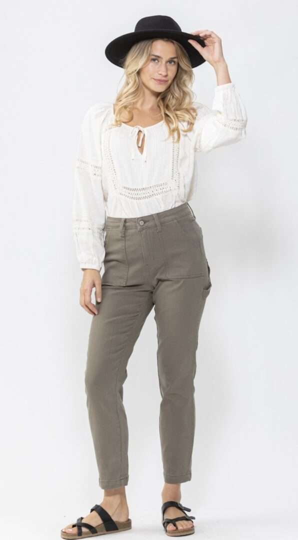 Judy Blue Utility Pants in Olive.