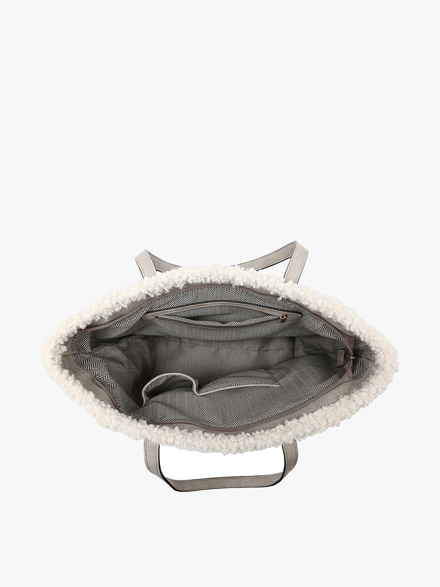 Jen & Co. - M2174 Lulu Sherpa Trim Tote w/ Front Pocket
