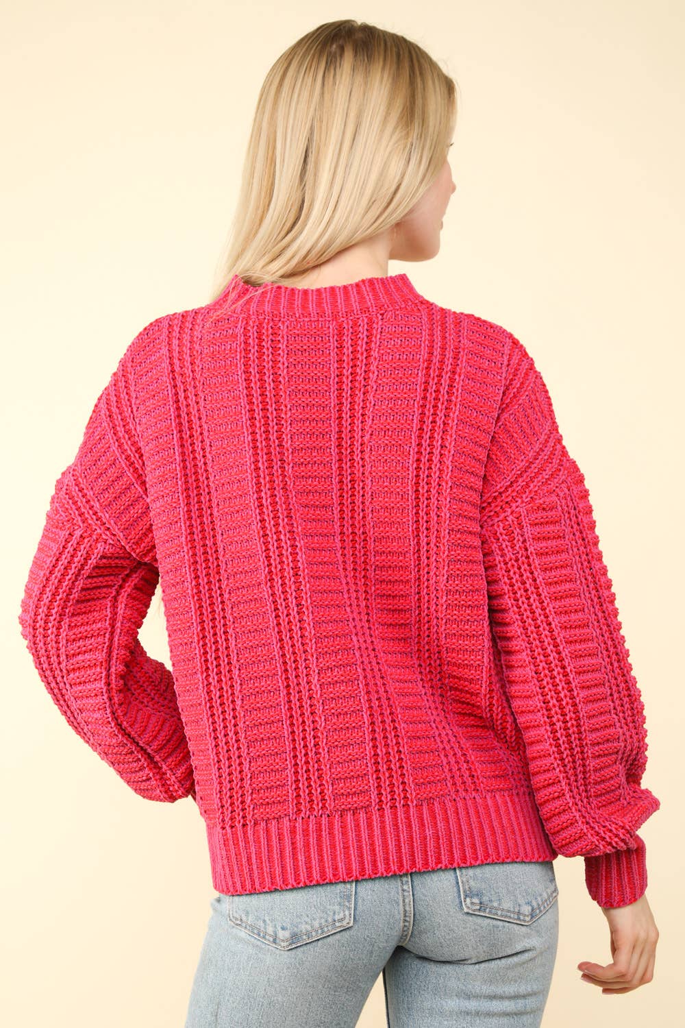 - Two Tone Cozy Sweater Knit Top - Oversized - Round Neck - Long Sleeve - Puff Sleeve - Drop Shoulder - Ribbed Hem (Model height: 5'7", wearing a Small, 2-2-2 Size Ratio, NEW IN
