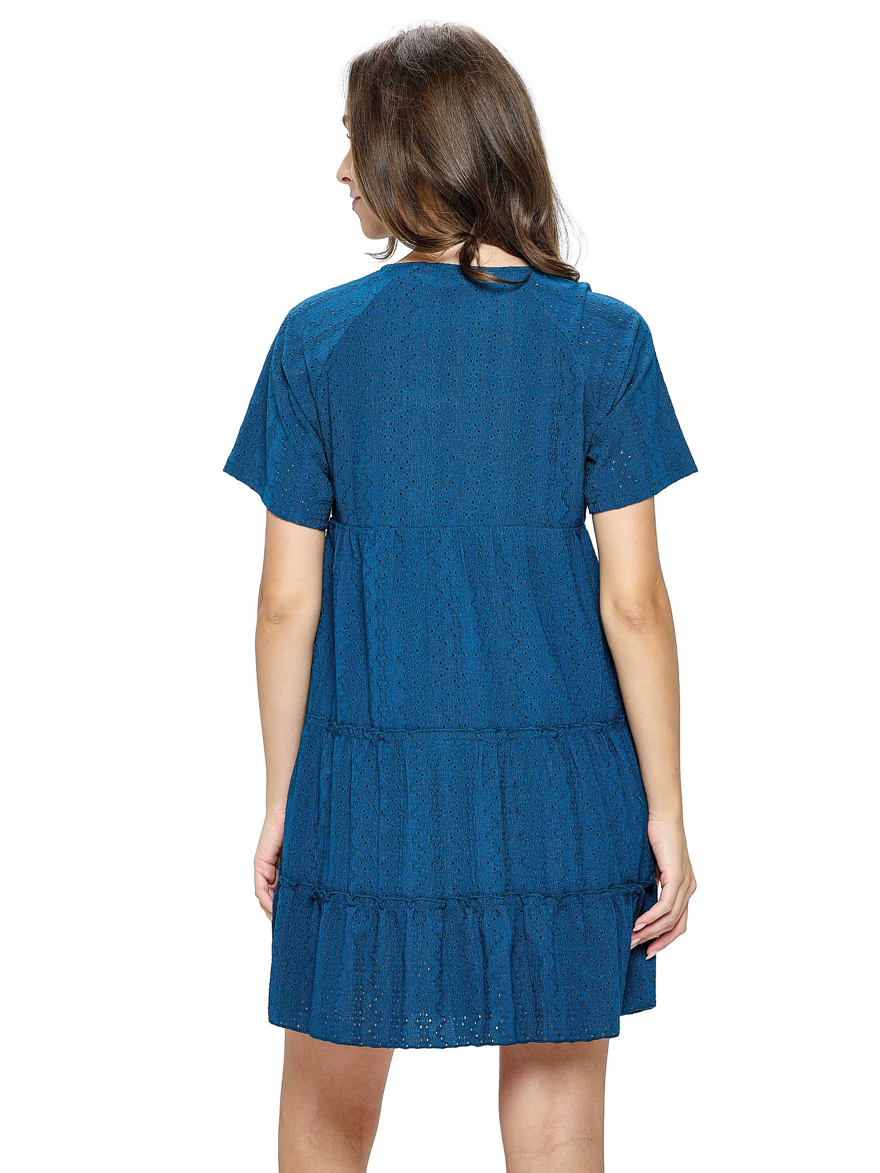 Spring Summer Dress – Babydoll Tiered Dress – Gyspi Groovy Boho Look – Casual Comfortable – Easy-to-wear fit – Feminine Style – Casual Style – Relaxed Silhouette – Eyelet Fabric – Front Pockets – V-Neck – Neck Tassels – Short Sleeve – 95% Polyster 5% Elastic – Made in Nepal Measurements : Chest- S 36", M 38", L 41", XL 44" Length- S 35", M 36", L 36.5", XL 37" Hem- S 64", M 66", L 69", XL 72"